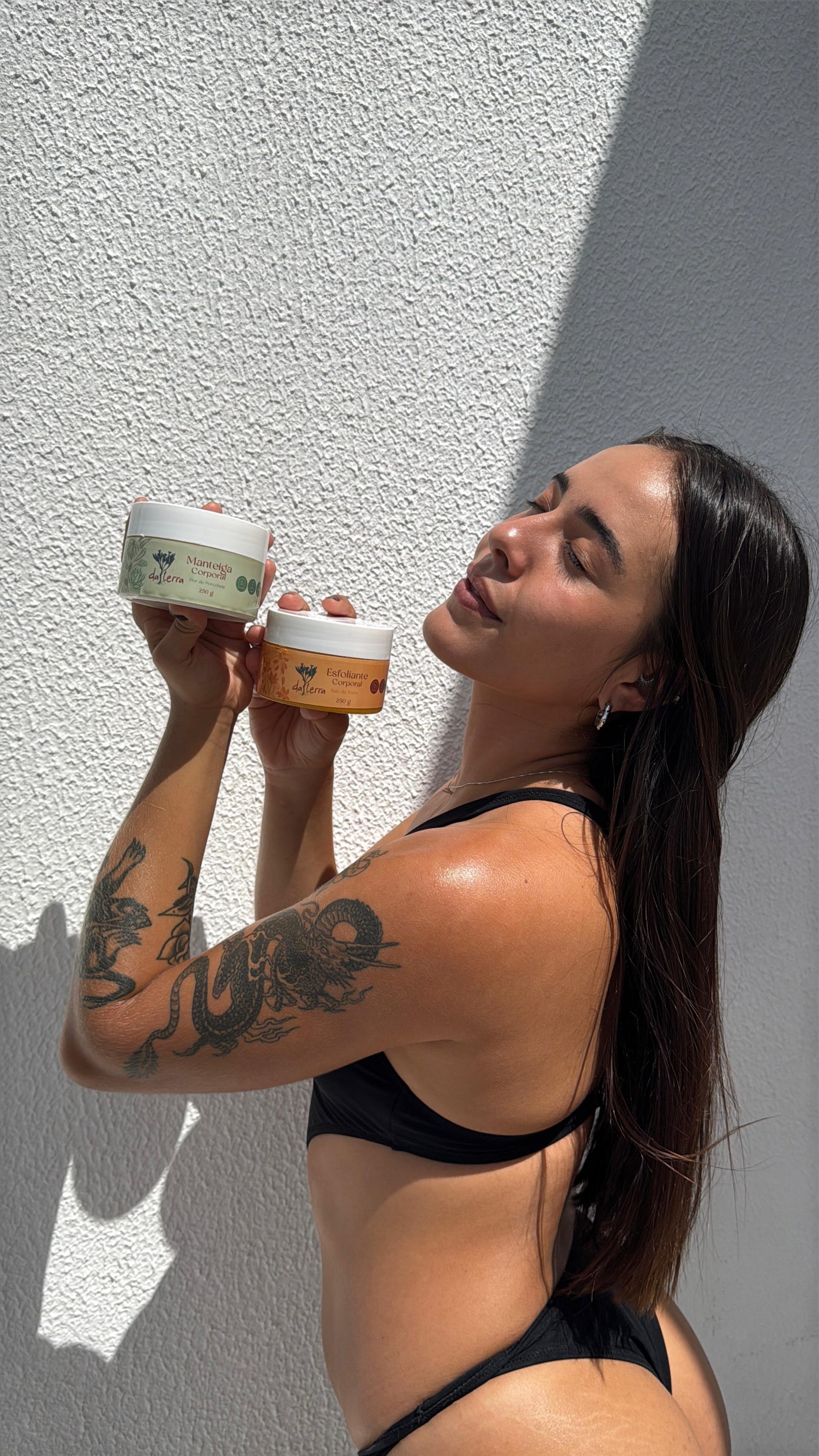 🍑 Dica: Use o esfoliante primeiro e finalize com a manteiga para potencializar os efeitos.